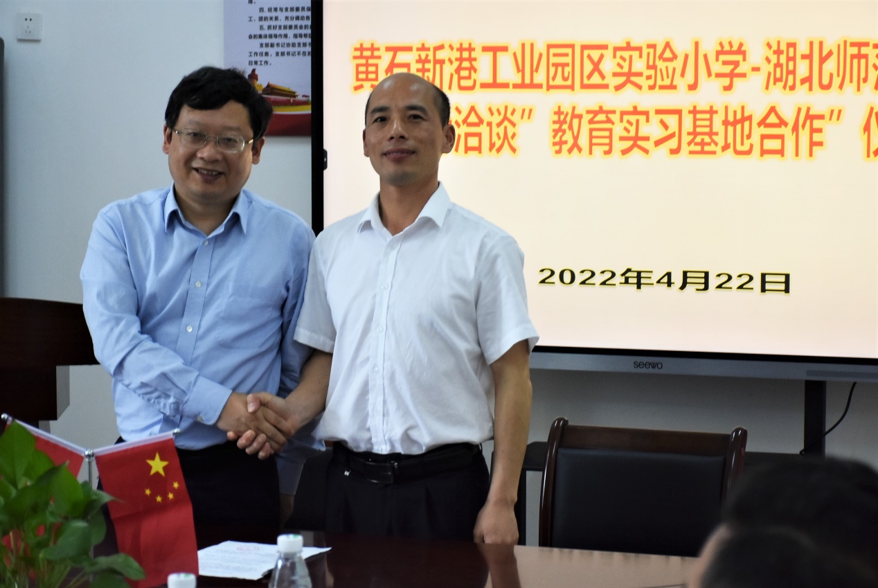 为推进我校教师教育综合改革试验区建设,拓展优质教育实习基地,应黄石新港工业园区试验小学的邀请,4月22日上午,湖北师范大学教学质量监测与评估中心主任、教务处副处长秦海涛,教育科学学院副院长崔波,基础教育研究所所长、黄石市家庭教育研究会会长邓李梅,教务处实践管理科张明红老师,小学教育系系主任周英杰等专家指导团队及小学教育专业硕士研究生一行14人莅临该校,洽谈教育实习基地建设。