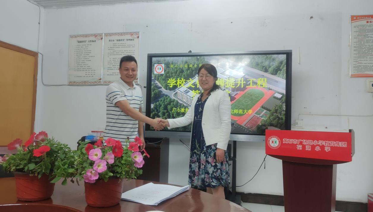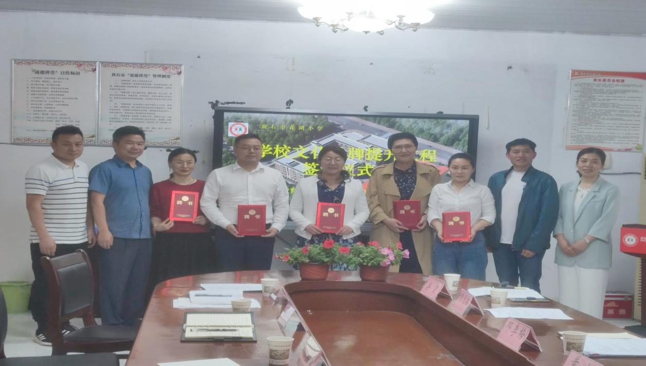 2022年5月9日,湖北royal皇家88平台教师团队承担的 “花湖小学学校文化品牌提升工程”签约仪式在黄石市花湖小学会议室顺利举行。我院教师邓李梅、黄娅、胡天佑、柴霞、朱培芳,广场路小学教育集团总支书记陈敬涛、总校长冯钊,花湖小学党支部书记肖青花、校长唐金华和其他学校领导、中层干部参加了此次签约仪式。