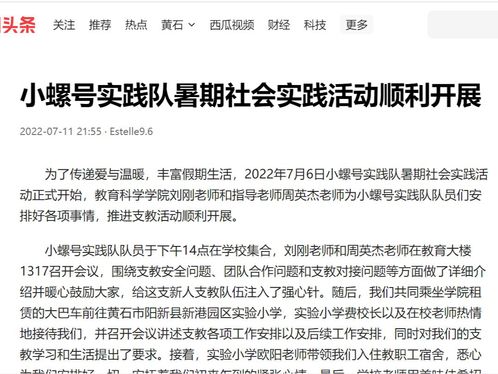 2022年7月7日至2022年7月22日,由教育科学学院社会实践调查大队实践部主办了针对新港园区实验小学开展支教的活动。此次活动目的不仅在于提高本院学生的专业技能,也为了支持对接学校的暑期托管工作,促进两校之间的友好交流。