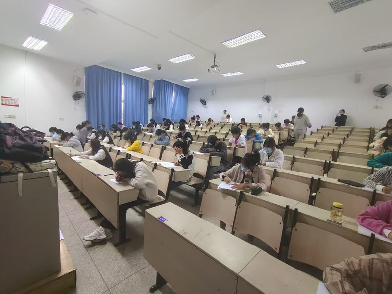 首先,校园安全部干事组织参赛者们有序地入位就坐,并为他们宣读相关参赛规则。随后干事分发试卷进行考试,同学们聚精会神地埋头作答,考场里只有笔和纸的沙沙声。最后由干事在规定的时间内收取参赛者的答试卷并及时进行批改、统计结果。