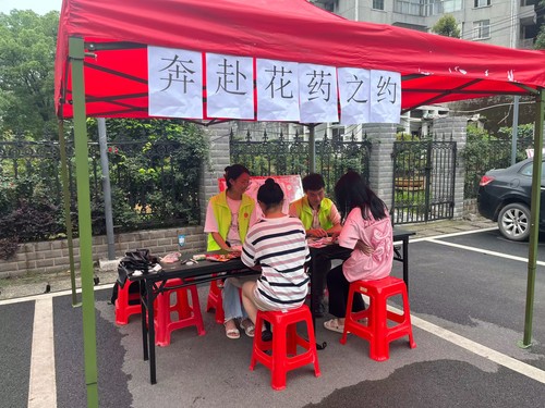 2023年6月3日教育科学学院2204班青小队在琼林苑门口开展以“奔赴花药之约”为主题的志愿活动,其目的在于让同学们了解关于地方十大名花的中国传统文化。通过传播大家写下的善意的话,传递社会正能量,营造更加良好、美善的校园氛围,同时让同学们了解花卉中更多的中医知识。