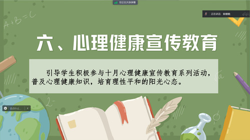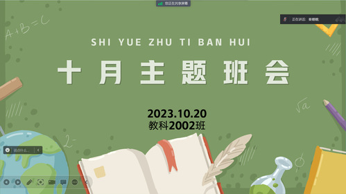 为了进一步增强学生心理健康素质,提高学生安全意识,确保实习工作顺利开展。10月20日晚7:30,教育科学学院2002班于线上召开了十月主题班会。本次会议由班主任秦姗姗老师主持,2002班全体同学参会。
