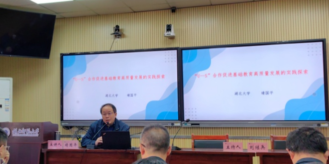 为庆祝学校建校五十周年,推进学院科研工作高质量发展,2023年11月6日下午,教育科学学院邀请湖北大学师范学院(教育学院)靖国平教授,在教育大楼1316A开展主题为《“U-S”合作促进基础教育高质量发展的实践探索》的学术讲座。本次活动由科学研究发展院、研究生院、教育科学学院共同主办,研究生院院长刘继兵教授主持讲座,我院师生和各学院教育硕士研究生导师参加了本次报告会。