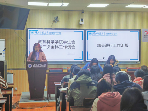 为了让学生会各部门新干事明确各自职责,更好地促进学生会工作的建设和开展,教育科学学院学生会于11月24日晚7:00在教育大楼1316举办了本学期学生会第二次全体工作会议。参加本次会议的有学生会主席宋米岍玥、翟彩云,以及各部门部长和新干事。
