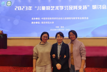2023年11月23日到24日,我院严春霞、寻舒珊老师参加了由中国学前教育研究会幼儿园课程与教学专业委员会在南京召开的“儿童的艺术学习及支持”研讨会,会议主要围绕支持儿童的音乐和美术深度学习的理论与实践问题进行深入研讨与交流。本次会议以线上线下相结合的形式展开,包括开幕式和四个平行专题论坛,分别是幼儿艺术学习评价、课程实践中的艺术整合、生活化艺术教育、艺术学习区域和环境创设与支持,每个论坛都安排了幼儿园实地观摩与手工坊,与分论坛对应的分别是南京市实验幼儿园、北京东路小学附属幼儿园、南京市第一幼儿园、南京市瑞金路幼儿园。