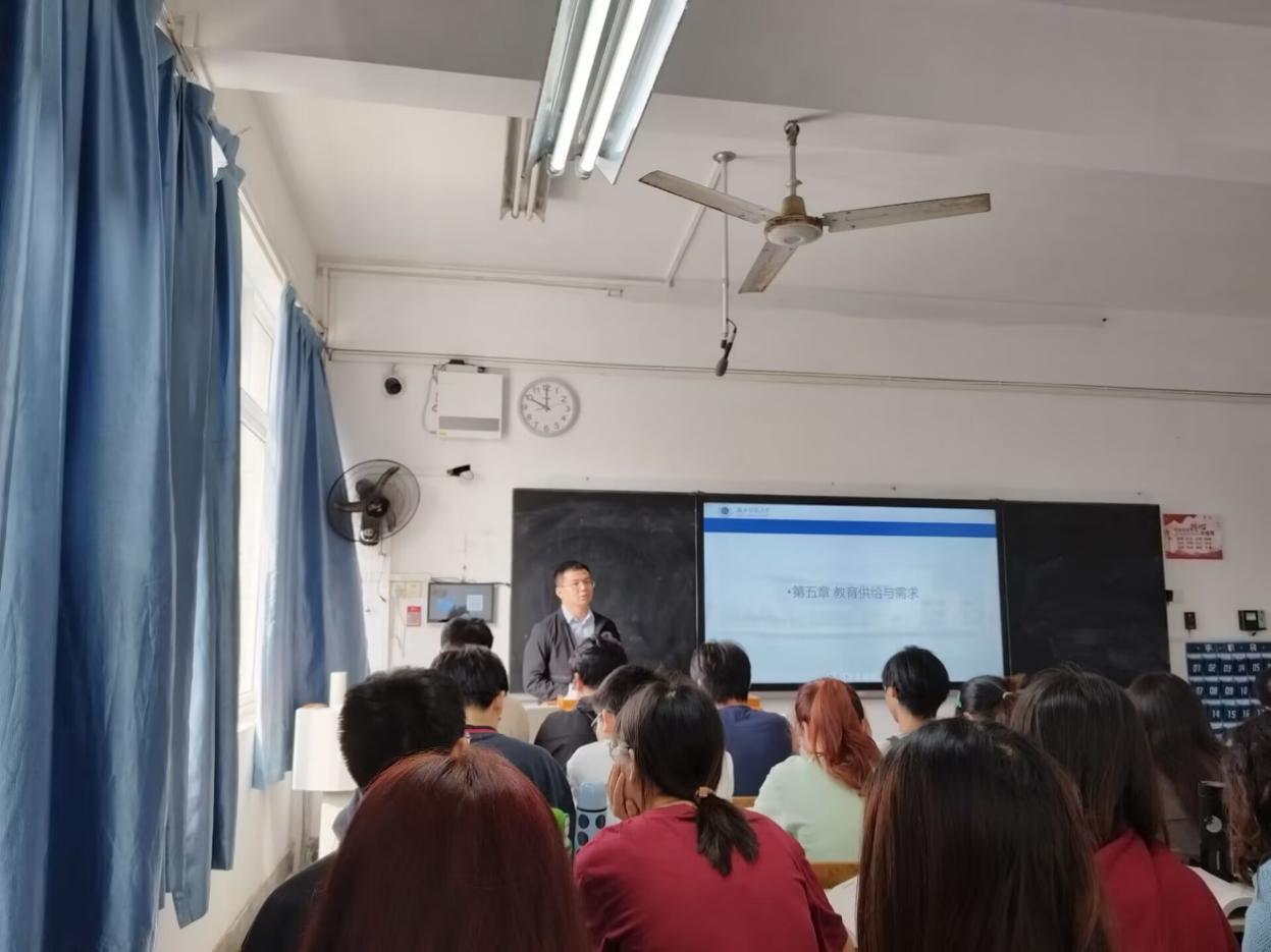 在公开课环节,教育学系青年教师程立浩博士主讲了专业课《教育经济学》中“教育供给与需求”的部分内容,程博士用完整的思路、清晰的语言就教育与劳动力供求、教育供求及其影响因素等内容进行了详细讲授,同时结合相关数据事实,让理论知识更具体、更丰富,引起同学们浓厚的学习兴趣。