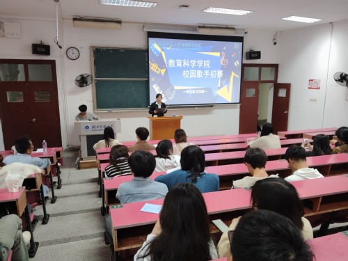为了丰富校园文化生活,营造积极向上、百花齐放的校园文化氛围,教育科学学院学生会文体部于11月16日下午在教育大楼1J22教室举办了校园歌手比赛,出席本次比赛的评委有校大学生艺术团合唱队队长曹舒雅、音乐协会会长罗欣雨。