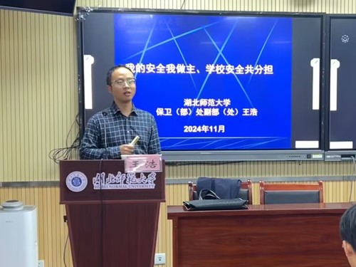 活动伊始,王浩指出二十届三中全会强调了全面贯彻总体国家安全观以及国家对安全问题高度重视的背景知识,并引用古语“居安思危,思则有备,有备无患”,提醒同学们具备安全意识的必要性和重要性。接着,王浩为同学们讲述高校安全“九大”方面,让同学们对高校安全知识有更加深刻的了解,他指出为保障安全,防范意识不可或缺,要记住“五要、十个凡是”。同时,重点强调了在网络发达、网络事件层出不穷的今天,大家要用批判的眼光看待,避免盲目跟风。最后,王浩提到高校保卫处是安全防线的坚实后盾,时刻准备应对突发情况,关切同学们的所需之处,引导大家将安全意识融入日常,共同维护高校的安全稳定,让校园成为安心学习和生活的乐园。