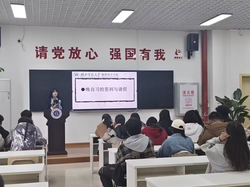 活动伊始,学风建设部部长胡志强就请假及请假条上交的流程规范进行讲解,着重强调了请假条申请要规范,上交要及时。随后,校园安全部部长王维娜指出了目前晚点名存在的问题,并对晚点名流程和记录表登记上交的规范性进行了重申。