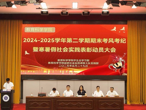 为强化学生诚信意识,营造公平公正的考试环境,激发学生参与社会实践的积极性与主动性,5月29日下午,教育科学学院2024-2025学年第二学期期末考风考纪暨寒暑假社会实践表彰动员大会在教育大楼报告厅顺利举行。教育科学学院党委副书记刘广兵,副院长张小菊,辅导员秦姗姗、刘丽娟、伊力扎提、夏青腾出席此次活动。24级各班班主任、第二十六届团副主席、优秀学生代表、获奖人员、22级专升本、23级各班班长及学习委员、24级全体本科生共同参加此次活动。此次活动由夏青腾主持。
