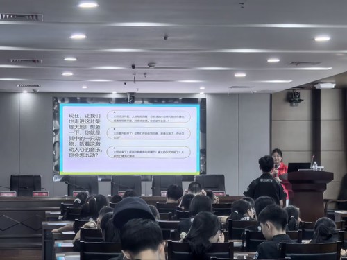 紧接着,实践队队员宋晓菡带来《<狮子王>开场音乐探秘》课程。她先播放经典旋律片段,引导孩子们分辨节奏强弱、感受音乐传递的情绪,随后提出“听音乐讲故事”的互动任务。小营员们结合旋律特点,充分发挥想象力,纷纷描述出草原日出、动物欢腾等场景,在旋律与故事的融合中体会音乐表达情感的作用。现场讨论声、回应声交织,形成活跃的课堂氛围。